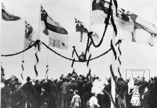 Den nybyggda järnvägen invigs i Morjärv 1903 av Kung Oskar den II. Detta var en stor och festlig händelse som naturligtvis dragit till sig mycket folk. Lägg märke till den Svensk-Norska unionsflaggan på bilden. Bildarkivet tar gärna emot kompletterande uppgifter om motivet.
