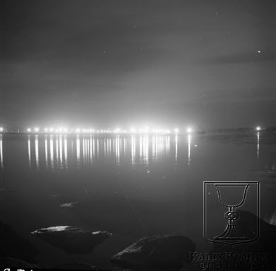 Nattskiftet kör för fullt på ön Vasssholmen. Då krävs det mycket belysning. Bildarkivet tar gärna emot komplettterande information om bilden.