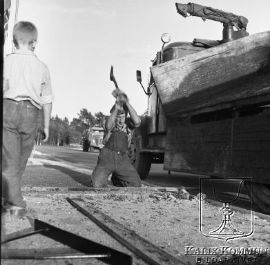 Här har asfaltering av strandgatan påbörjats. Bildarkivet tar gärna emot komplettterande information om bilden.
